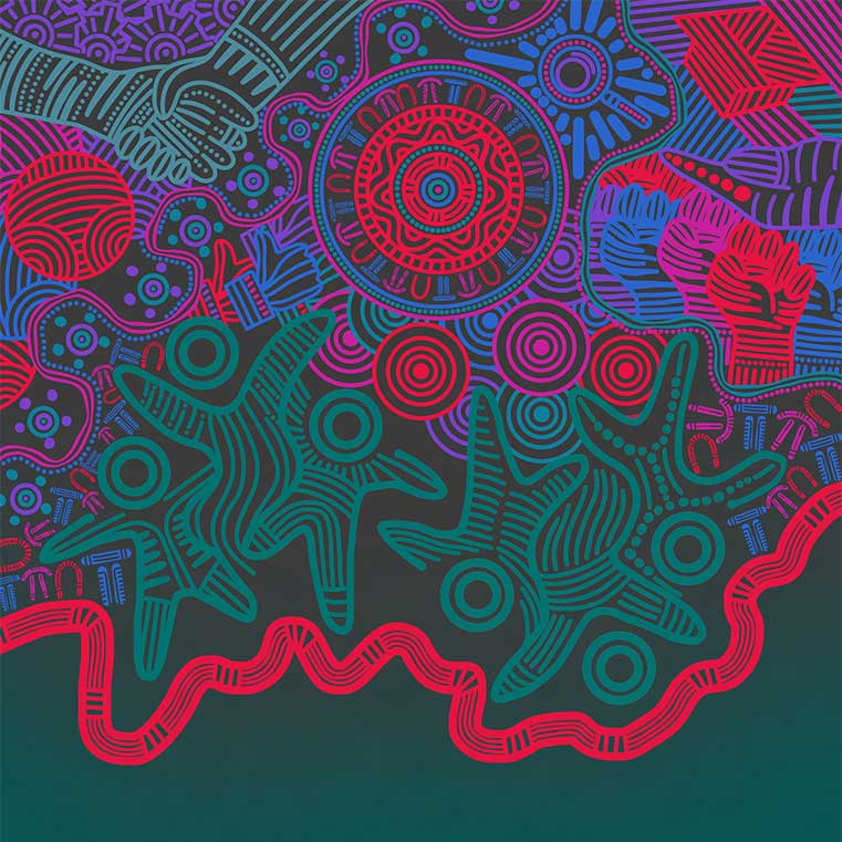 Image credit: Artwork by Whadjuk, Ballardong & Yamatji Aboriginal Woman Marcia McGuire