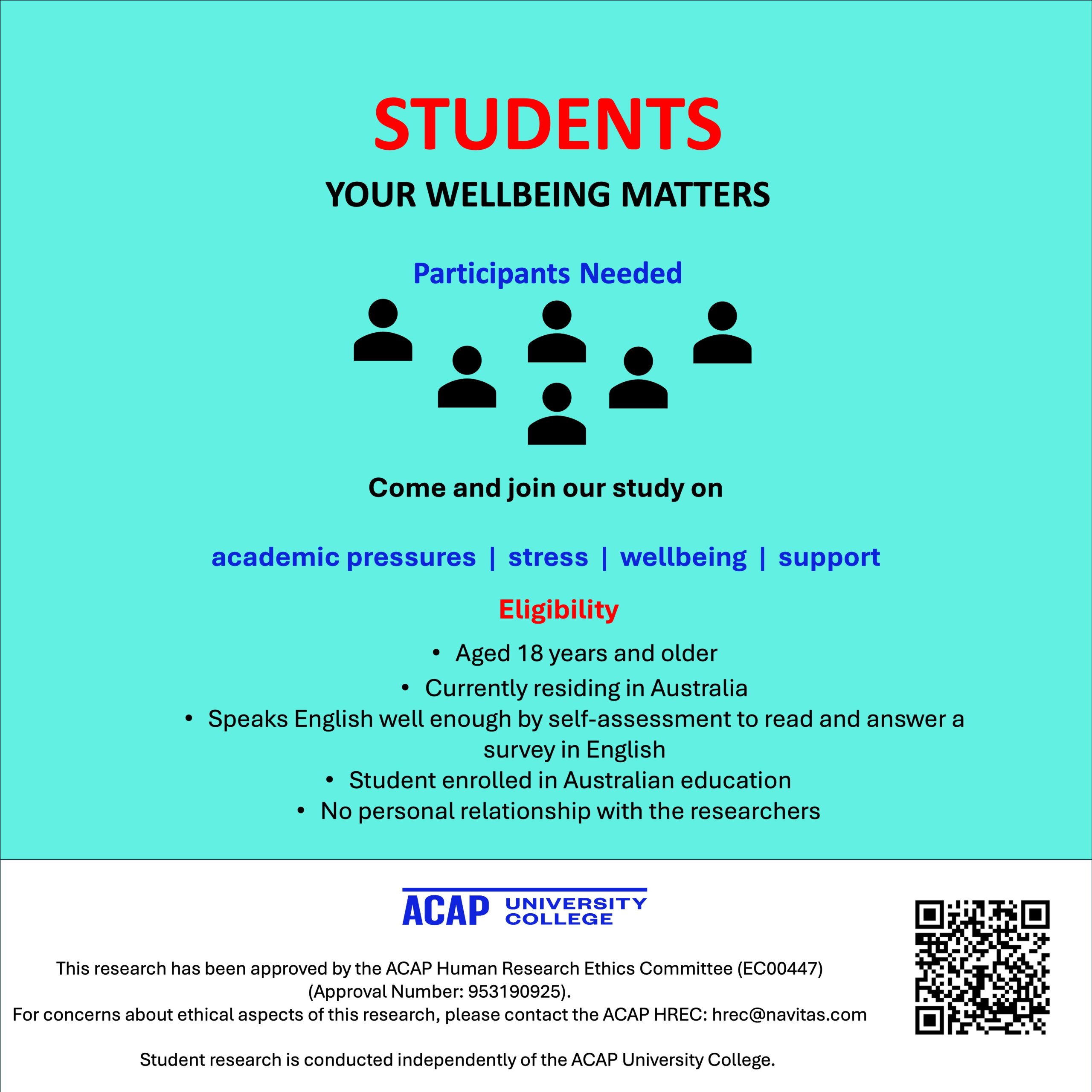 This research has been approved by the ACAP University College HREC (EC00447) (Approval Number: 932100625).